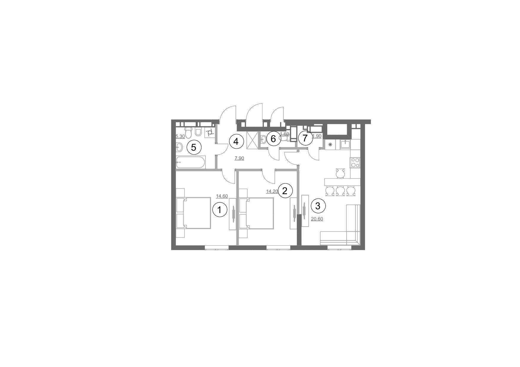 3.  Кухня: 20.6 м2