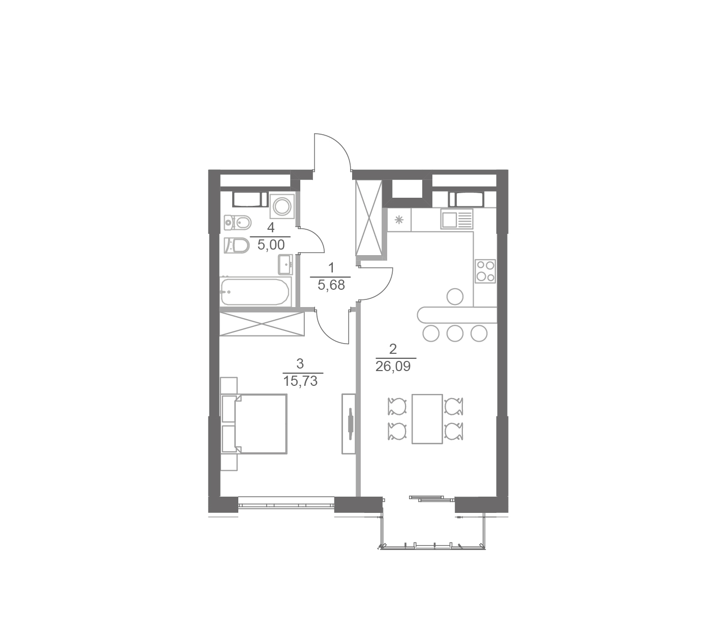 2.  Кухня: 26.09 м2
