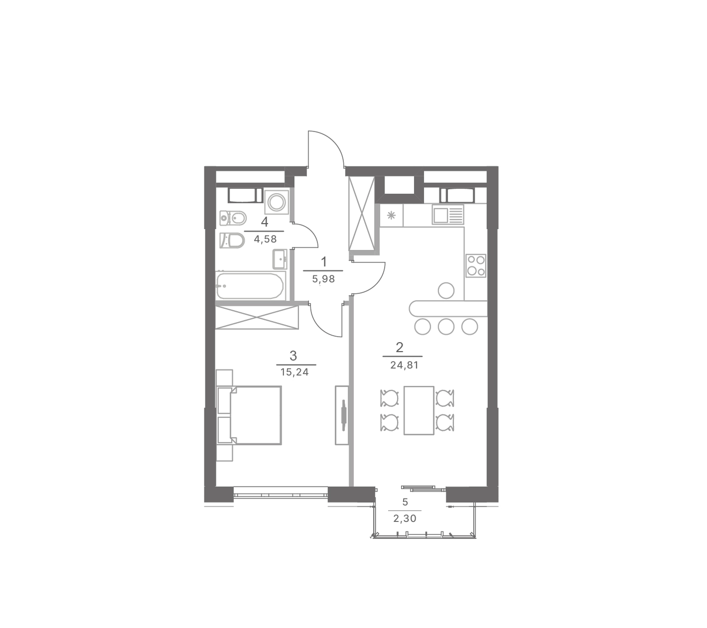 2.  Кухня-вітальня: 24.81 м2