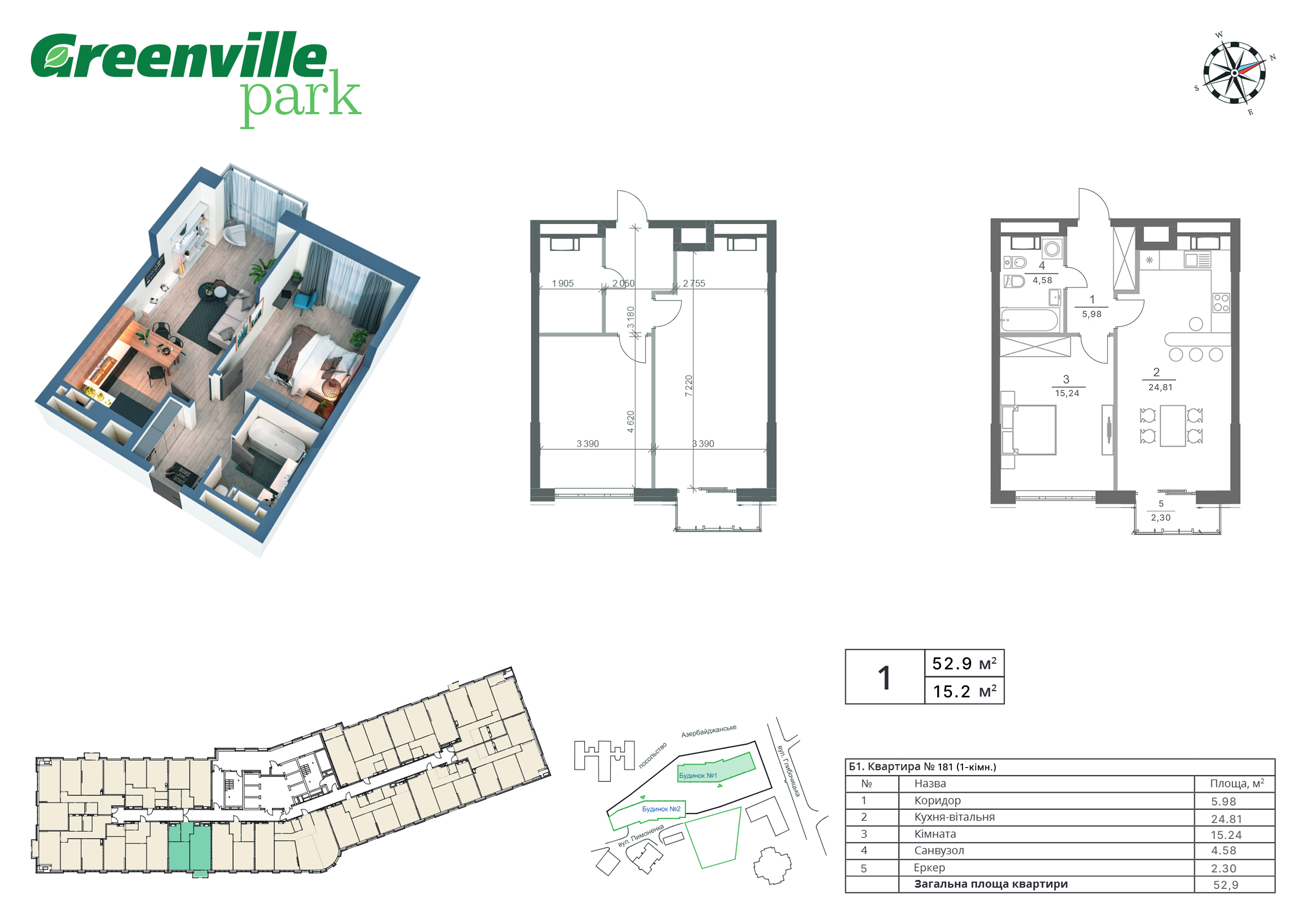 3.  Кімната - 1: 15.24 м2