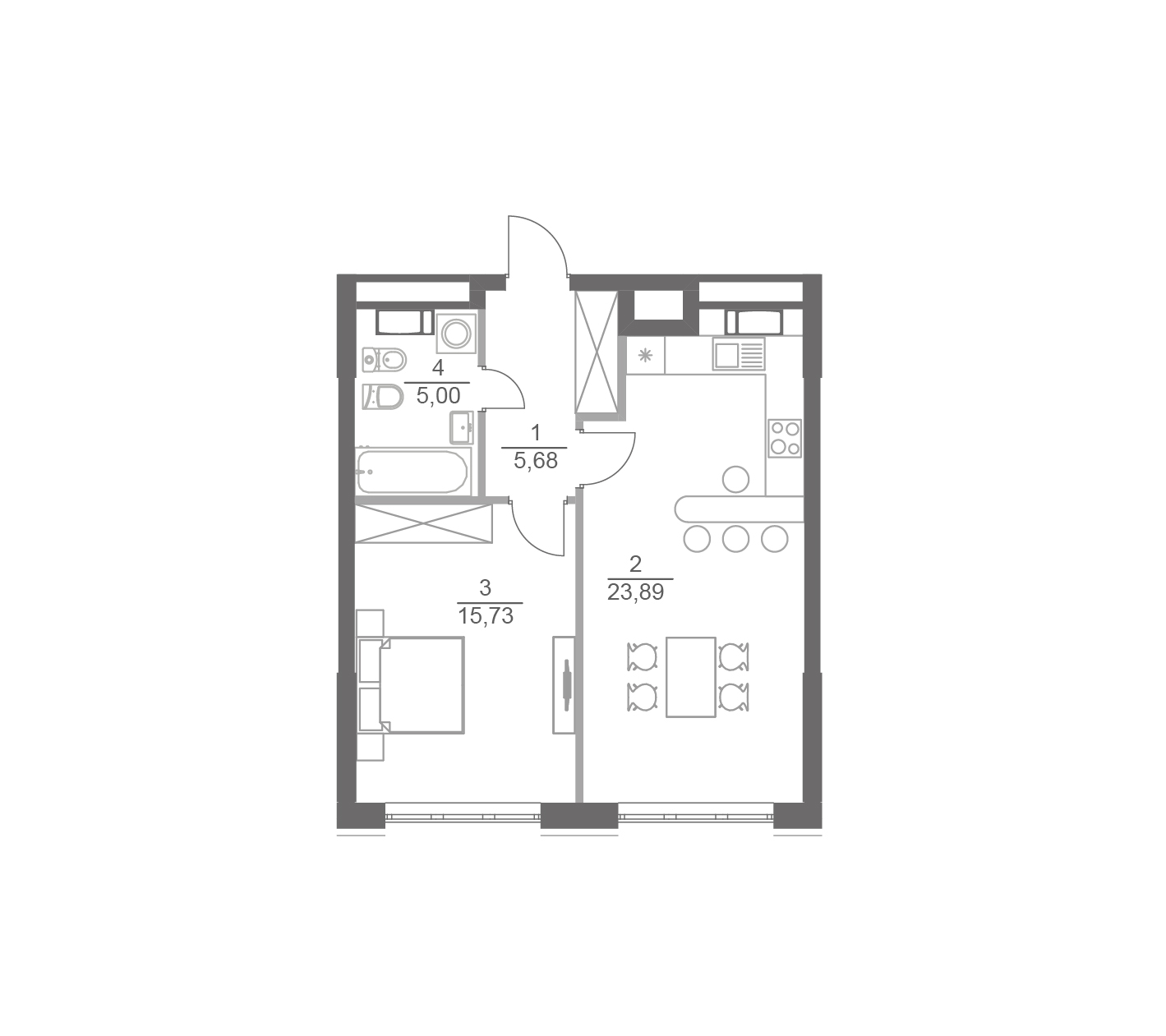 3.  Коридор: 5.68 м2