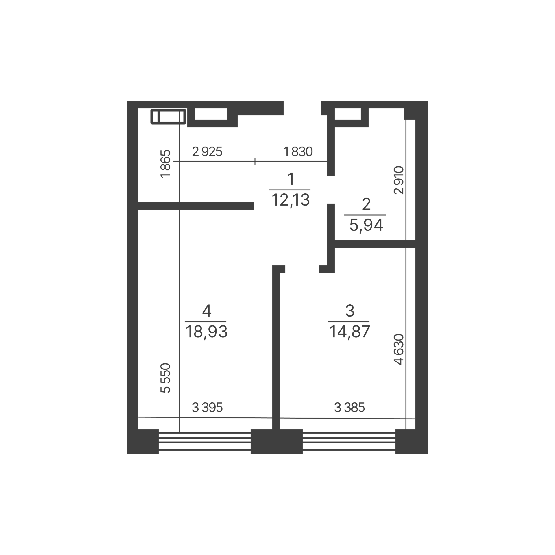 3.  Bathroom: 5.94 м2