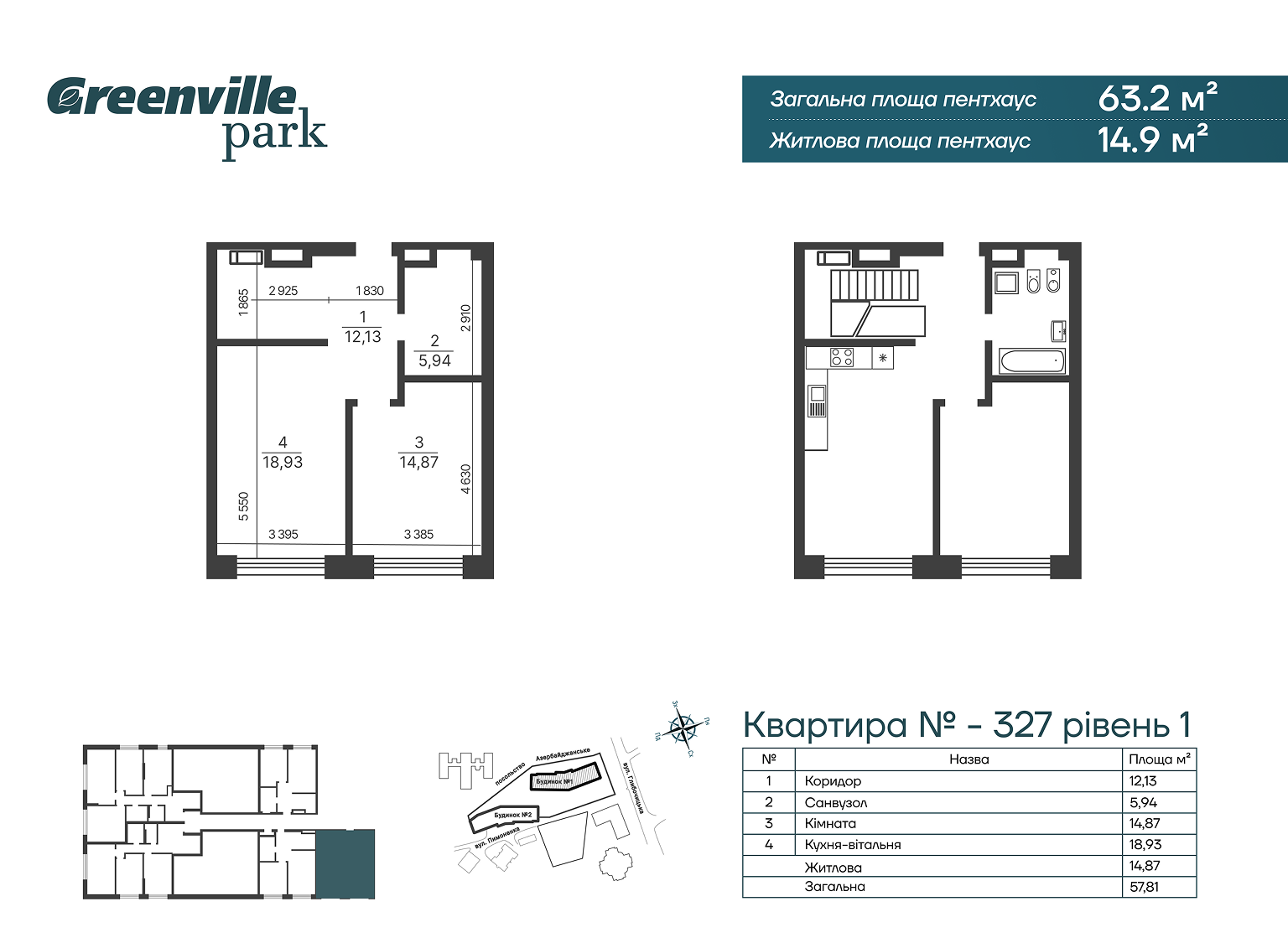 1.  (УКР) Рівень 1: 57.81 м2