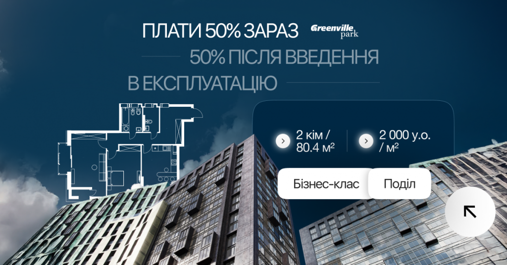 Скористайтеся вигідними умовами від забудовника для придбання житла бізнес-класу. Програма «50 на 50» дозволяє зафіксувати ціну та стати власником квартири в Greenville Park, маючи лише половину вартості.