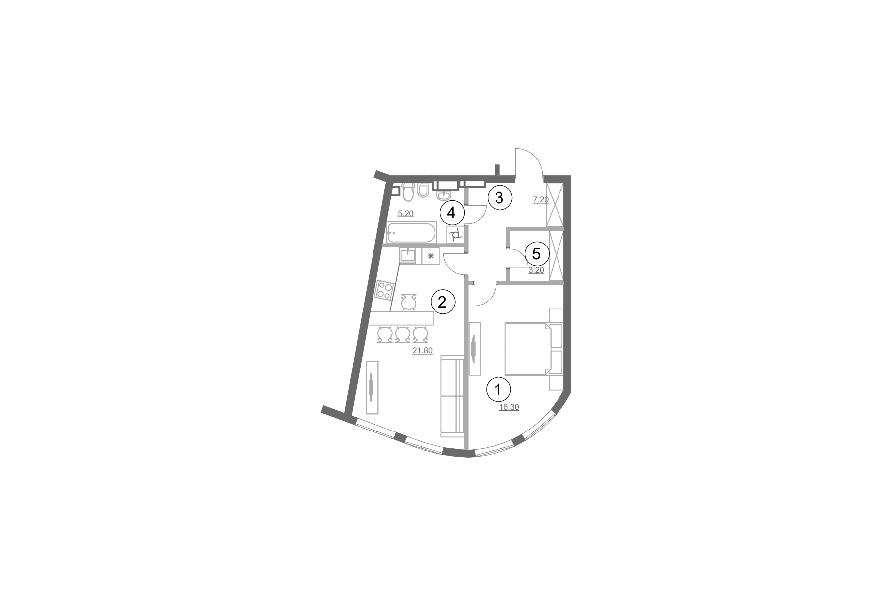 4.  (УКР) Сан. вузол: 5.2 м2
