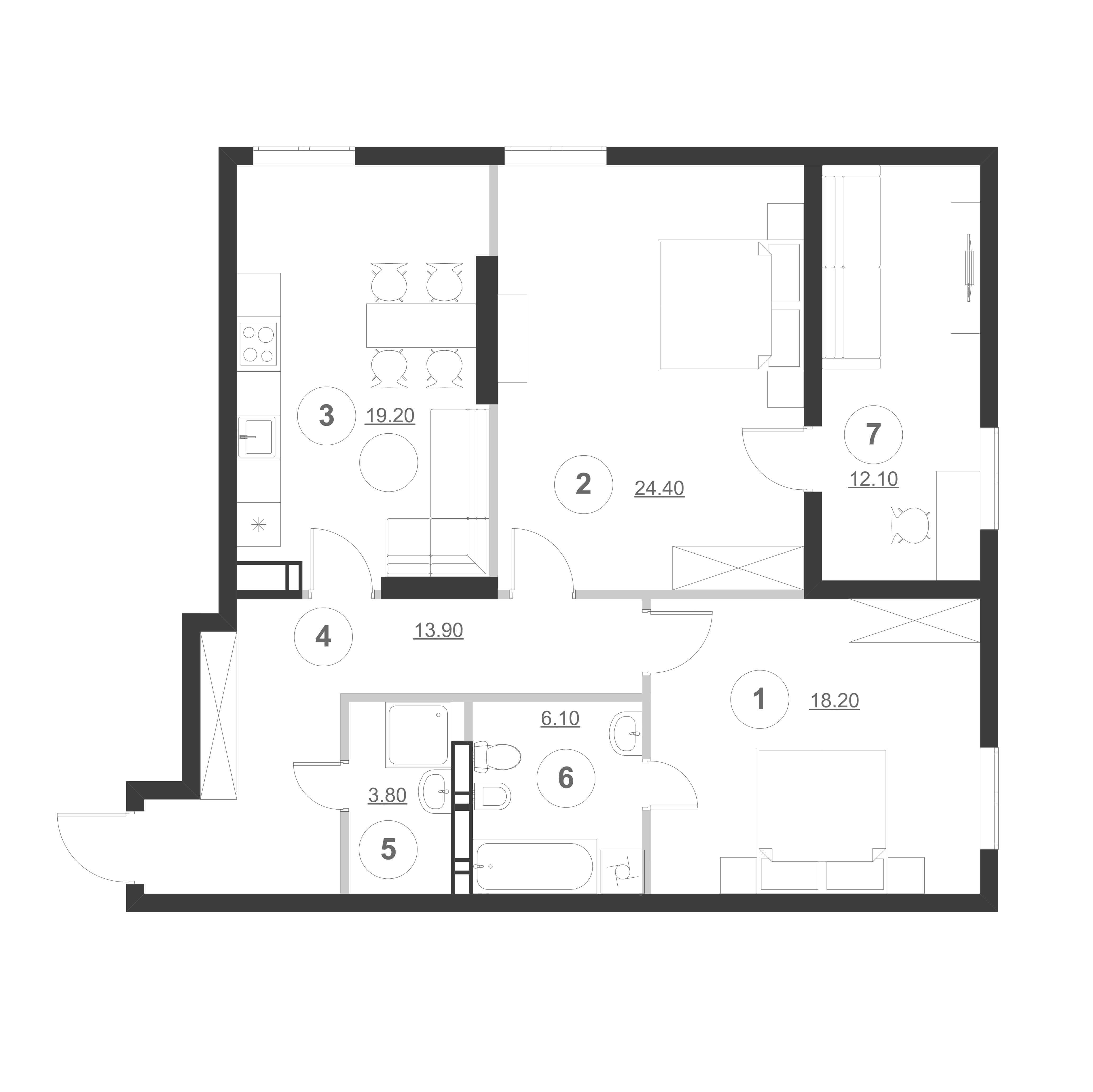 6.  (УКР) Сан. вузол - 2: 6.1 м2