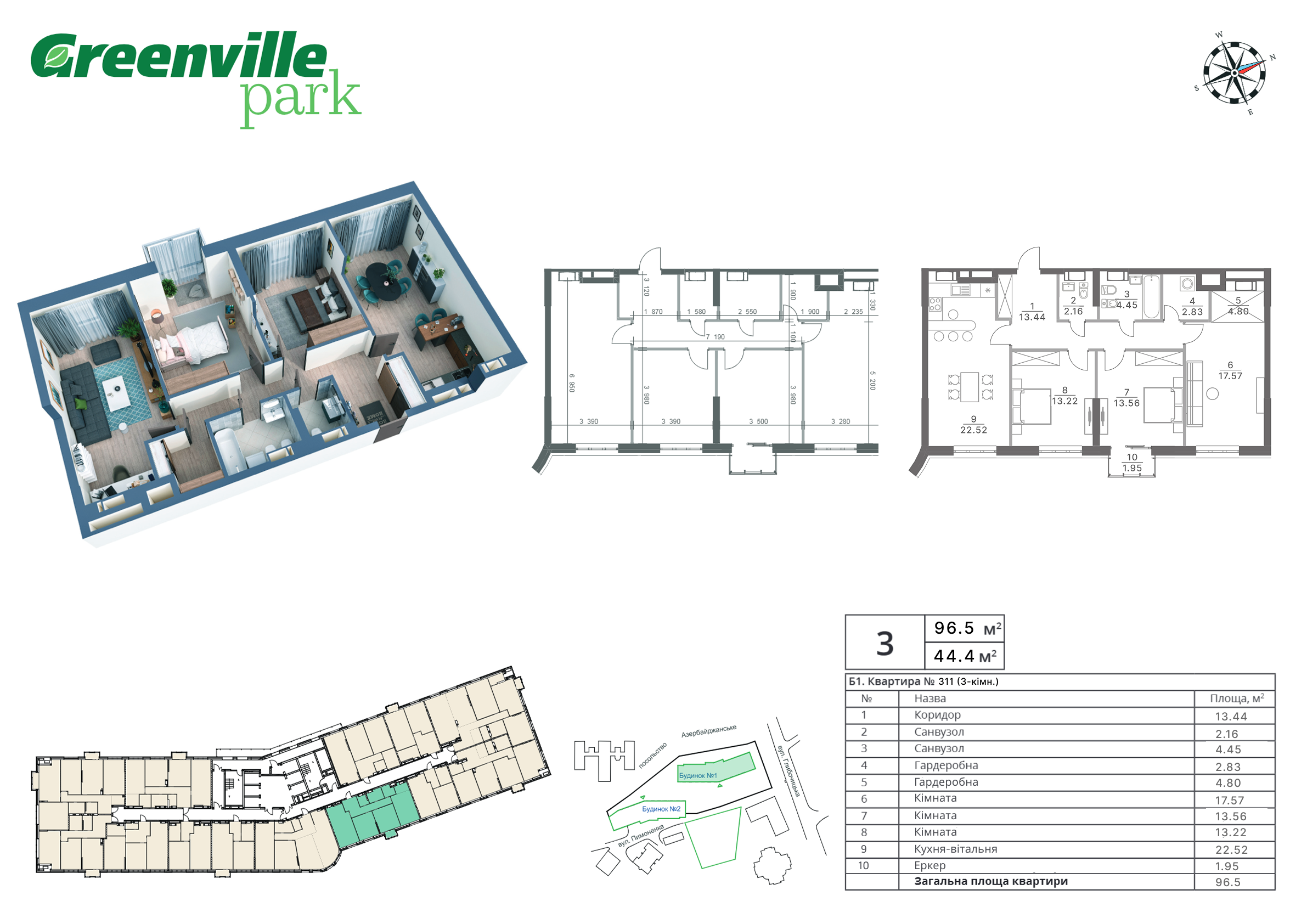 1.  Коридор: 13.44 м2