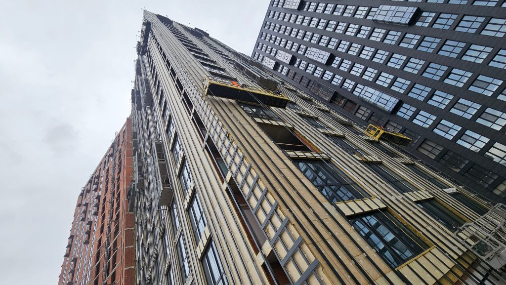- Монтаж кронштейнів вентильованого фасаду (торець від будинку 2) – 100%